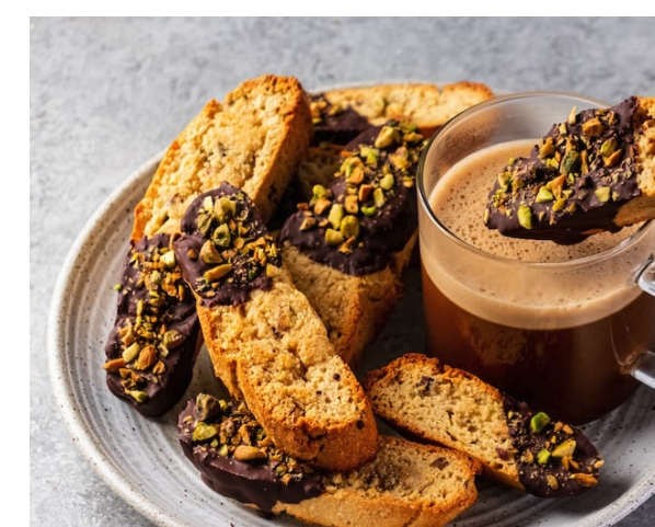 Honey Pistachio Biscotti Redwanul kabir Shohan / January 3, 2026 Crisp almond flour biscotti dipped in chocolate and pistachios.