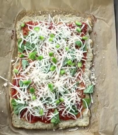 High-protein calzone with a crust made from seasoned ground chicken.