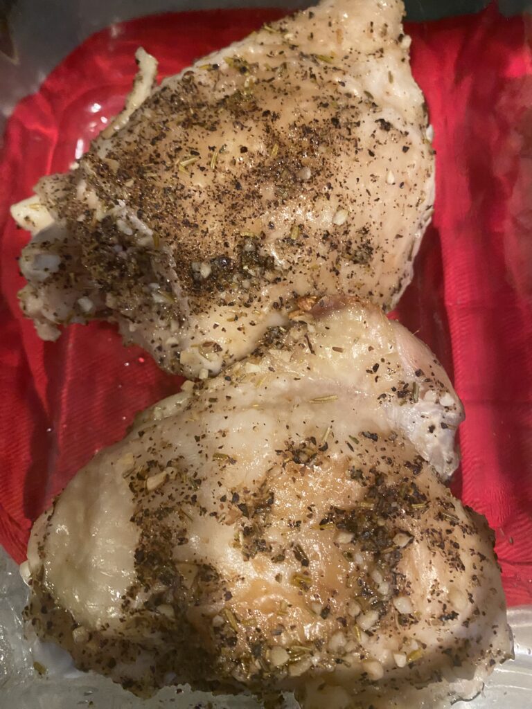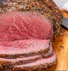 Oven-roasted beef round with a garlic, thyme, and rosemary crust.