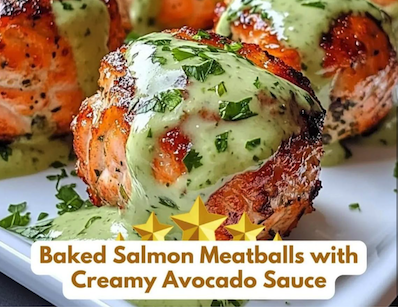 Tender salmon meatballs served with a zest lime and avocado yogurt sauce.