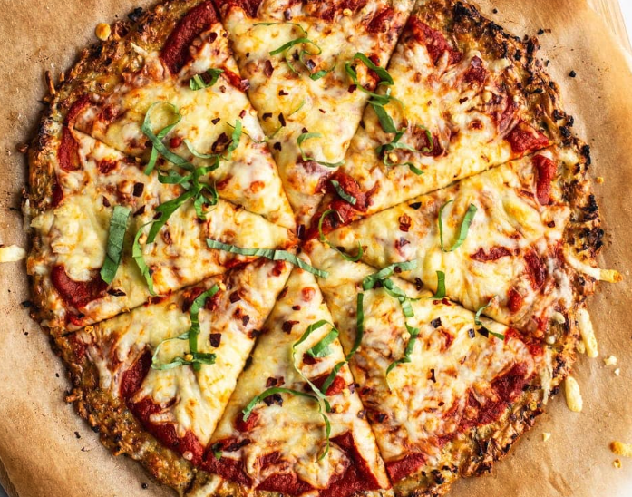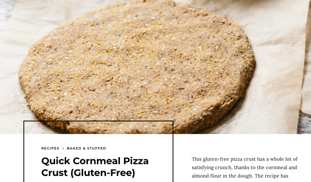 Gluten-free pizza crust made with oat flour, cornmeal, and almond flour.