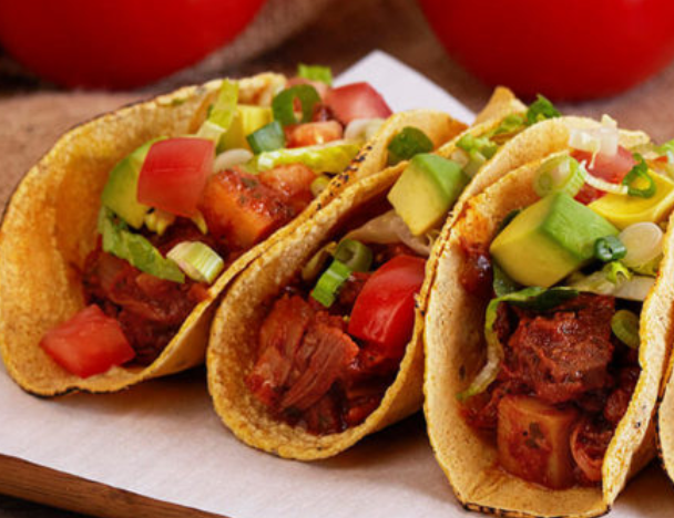 Shredded flank steak tacos seasoned with lime, cilantro, and spices.
