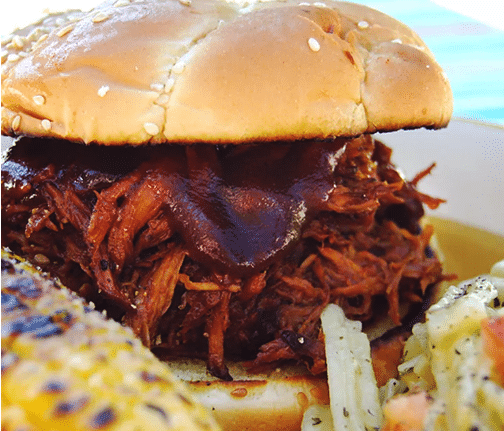 Brisket slow-cooked with red wine, onions, and garlic until falling apart.
