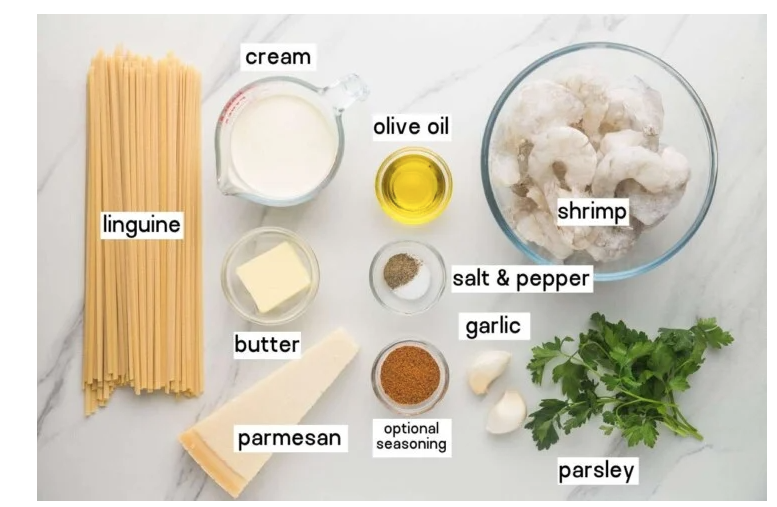 Linguine pasta tossed with shrimp in a creamy garlic parmesan sauce.