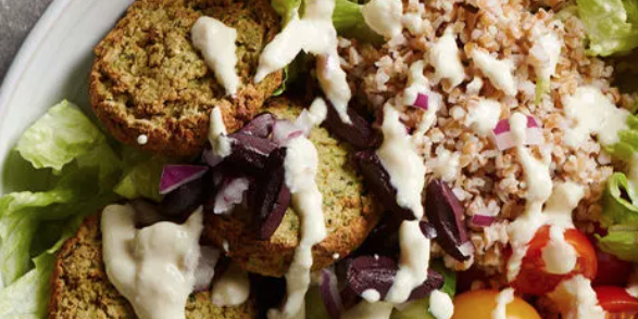 Greek Salad with Falafel Redwanul kabir Shohan / January 3, 2026 Greek salad topped with air-fried falafel and creamy cashew dressing.